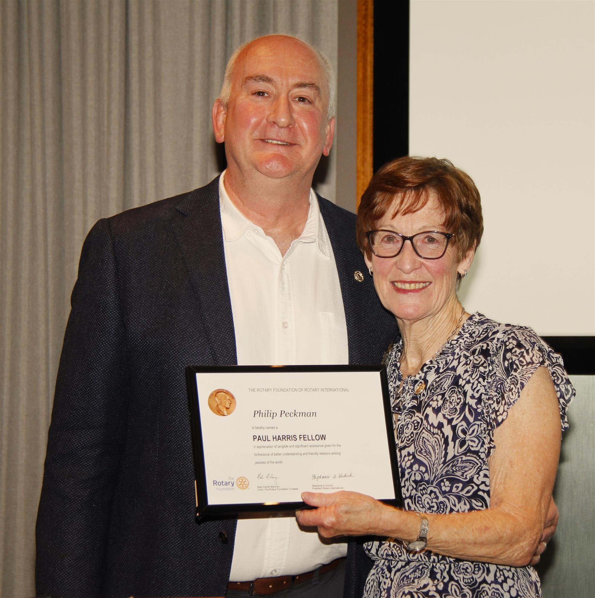 During these five or so years, his list of achievements are too many to list here, but he has made an immeasurable impact on the organisation and functioning of our club. This he has done in his very personable, friendly yet businesslike manner. Phil supports all our club activities and social events and has also played an active role in Illawarra Rotary Clubs combined projects. So, this PHF was awarded to someone who epitomizes the ethos of Rotarians.